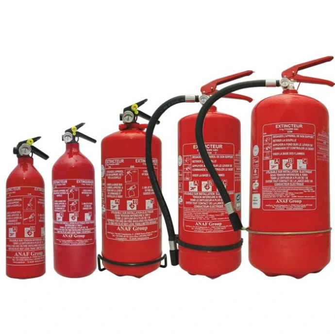 Extincteurs portables (CO2, Mousse, Poudre), lances et tuyaux d'incendie, tenues de pompier et appareils respiratoires (ARI).